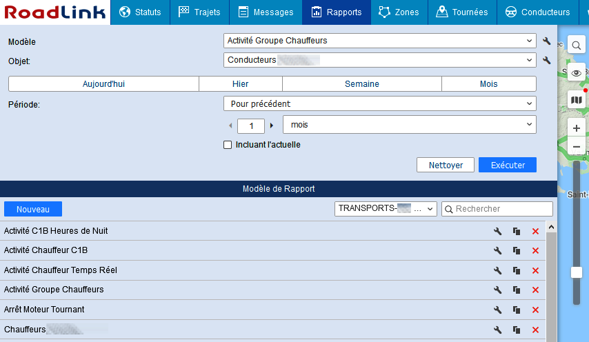 Si cette colonne n'apparait pas, contactez notre équipe support qui la rajoutera.En ouvrant l'onglet Rapports, vous aurez accès à plusieurs rapports sur les activités Conducteurs, déterminant leurs activités horodatées et localisées dans les véhicules.